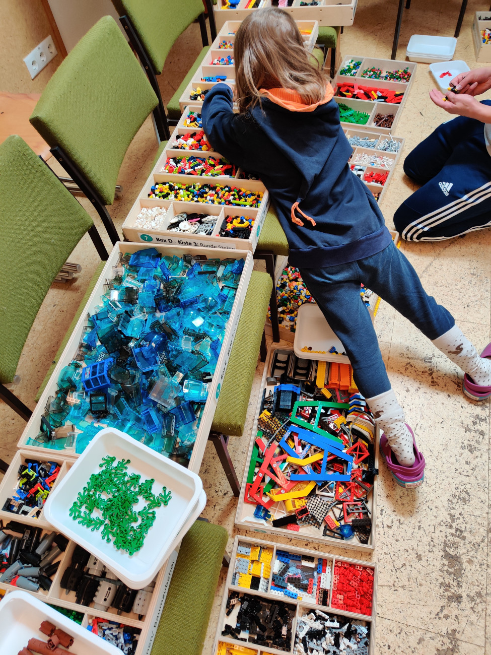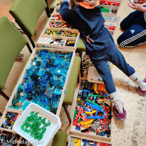 "Wow, so viele Lego®steine!" Staunende Augen blicken in das Steinelager mit den über 100.000 Klembausteinen. Die Bausteinestadt ist ein Projekt des Dekanatsbezirks Kempten, das in verschiedenen Kirchengemeinden innerhalb und außerhalb des Dekanatsbezirks Halt macht. Auf rund 25 verschiedene Einsätze kommt die Stadt im Jahr. 70 Kinder können mit dem Material ein ganzes Wochenende eine Stadt bauen. Aber auch andere Formen wurden schon probiert: Erwachsene tauschen sich abends über ein Thema aus, das sie dann gemeinsam bauen, Eltern-Kind-Bautage, Gemeinde-Bauwochenenden für alle Generationen, Jugendwochenenden, Kooperationen mit Schulen und vieles mehr ist mit den Lego®steinen möglich.