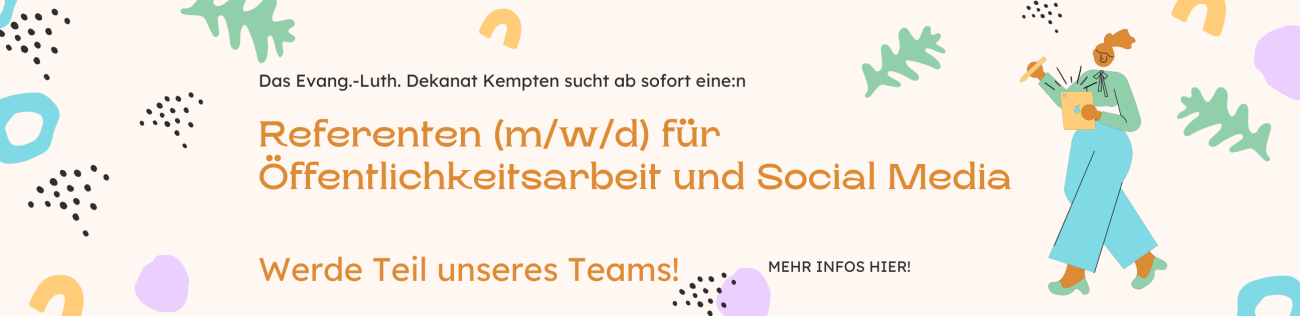 - Du berätst die Kirchengemeinden im Dekanatsbezirk bei deren Öffentlichkeitsarbeit (z.B. Website und Social Media)